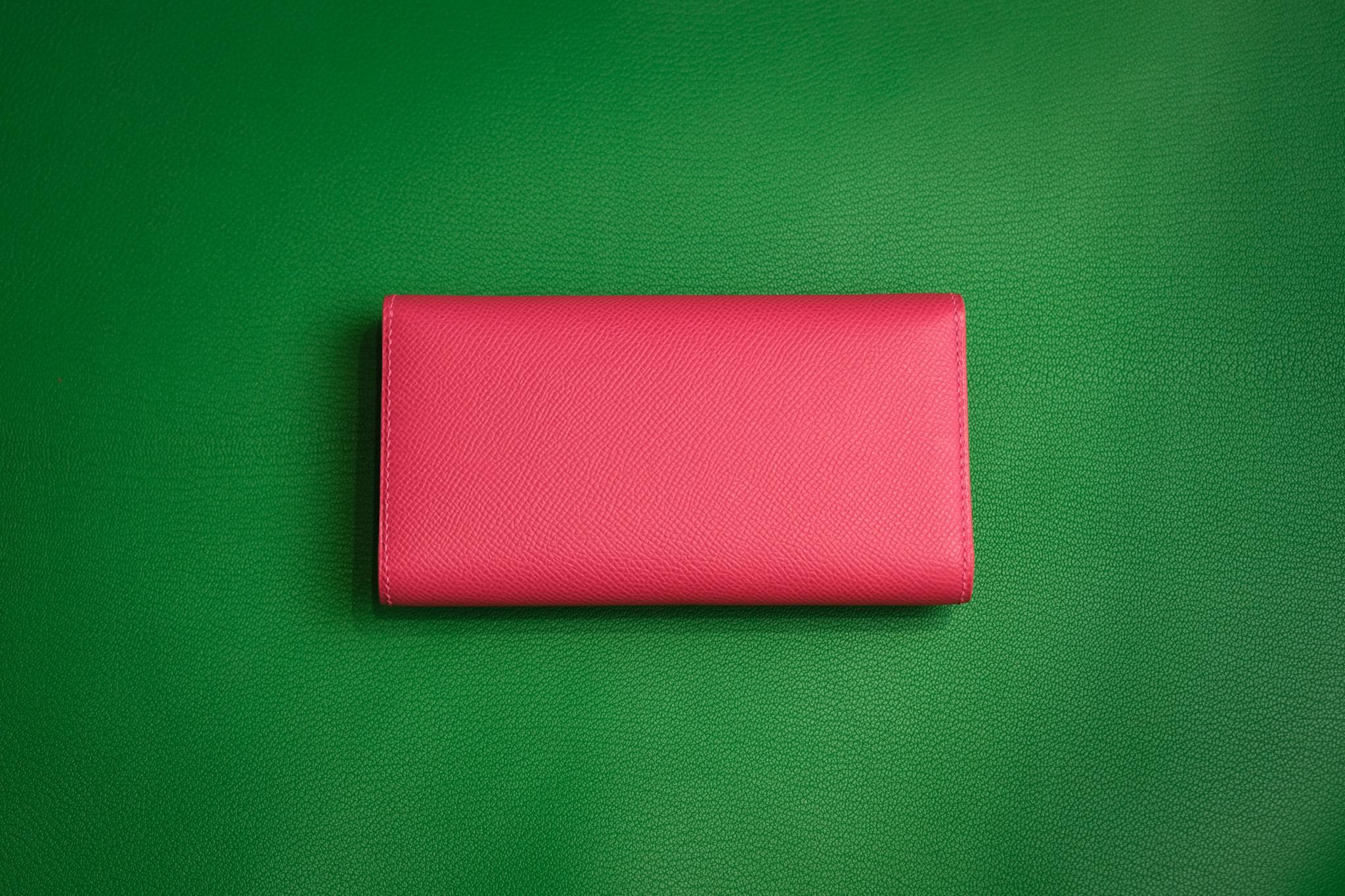 Ví dài nữ KOI Leather được chế tác thủ công từ da bò vân Epsom cao cấp màu hồng san hô (Rose Corail), nổi bật với bề mặt hạt nổi đều đặn, cứng cáp và khả năng chống trầy xước vượt trội. Thiết kế nắp gập cong mềm mại kết hợp nút bấm mạ vàng sang trọng, bên trong rộng rãi giúp sắp xếp tiền mặt, thẻ ngân hàng và giấy tờ gọn gàng. Mỗi đường chỉ may đều được nghệ nhân KOI thực hiện tỉ mỉ, đảm bảo độ bền và tính thẩm mỹ hoàn hảo. Sản phẩm phù hợp làm quà tặng ý nghĩa hoặc phụ kiện cá nhân đẳng cấp cho phái nữ.