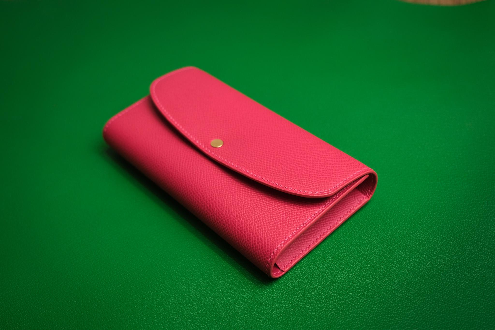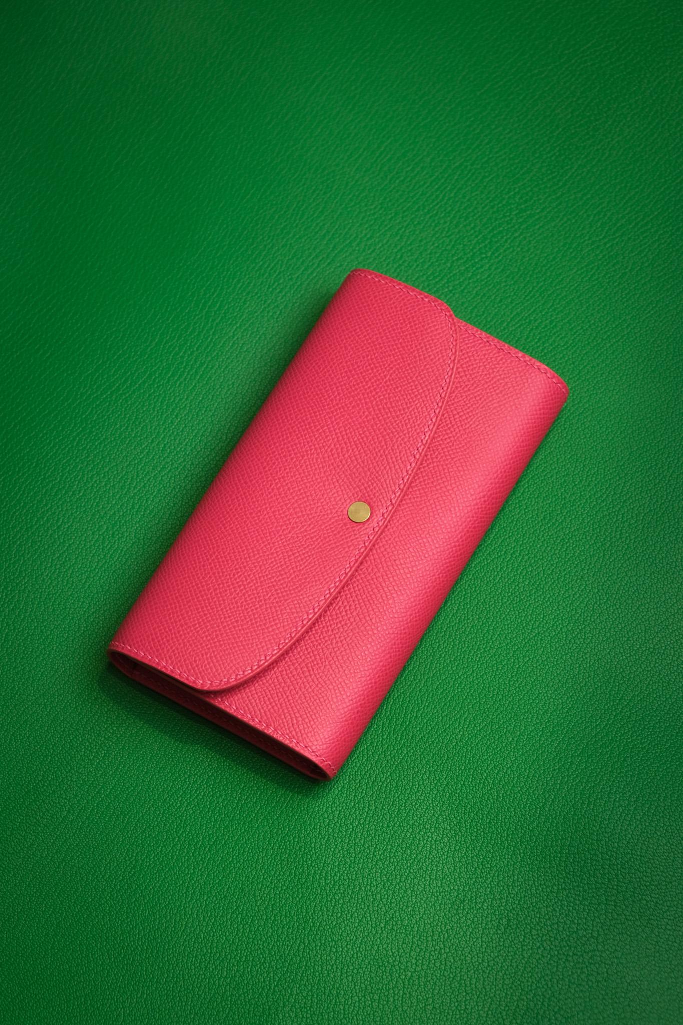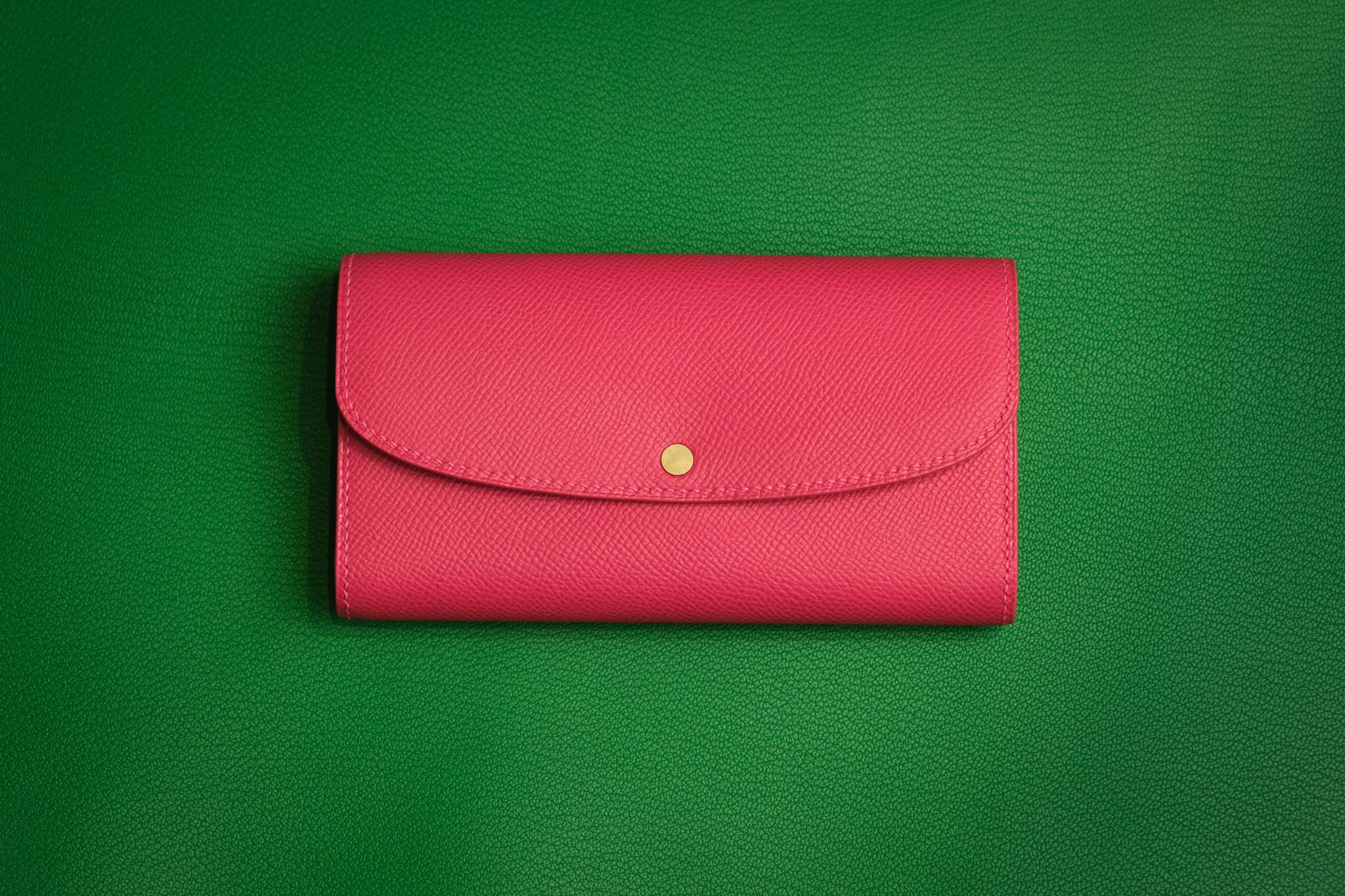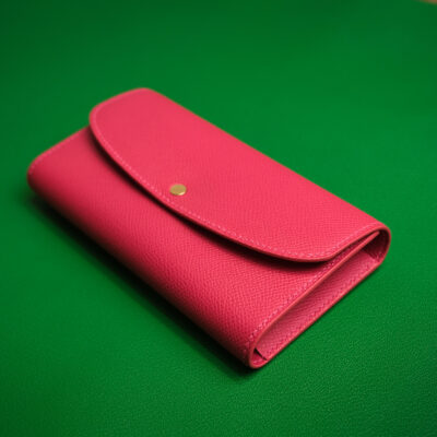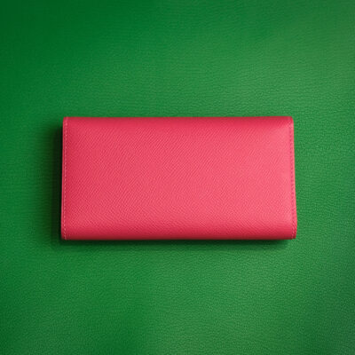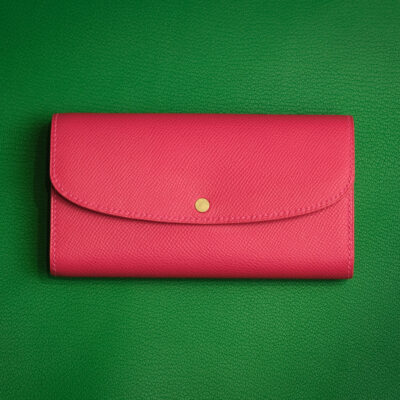 Ví dài nữ KOI Leather được chế tác thủ công từ da bò vân Epsom cao cấp màu hồng san hô (Rose Corail), nổi bật với bề mặt hạt nổi đều đặn, cứng cáp và khả năng chống trầy xước vượt trội. Thiết kế nắp gập cong mềm mại kết hợp nút bấm mạ vàng sang trọng, bên trong rộng rãi giúp sắp xếp tiền mặt, thẻ ngân hàng và giấy tờ gọn gàng. Mỗi đường chỉ may đều được nghệ nhân KOI thực hiện tỉ mỉ, đảm bảo độ bền và tính thẩm mỹ hoàn hảo. Sản phẩm phù hợp làm quà tặng ý nghĩa hoặc phụ kiện cá nhân đẳng cấp cho phái nữ.