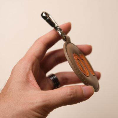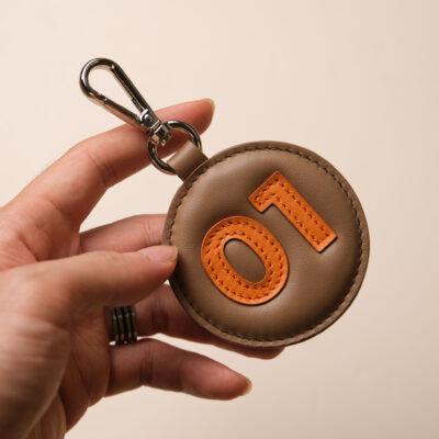 Sản phẩm có form tròn dày dặn, viền khâu tay đều đặn, kết hợp móc kim loại bạc chắc chắn giúp dễ dàng gắn lên túi xách, ba lô hoặc vali. Đây là phụ kiện da cao cấp lý tưởng để cá nhân hóa đồ dùng hoặc làm quà tặng ý nghĩa cho người yêu thích sự tinh tế.