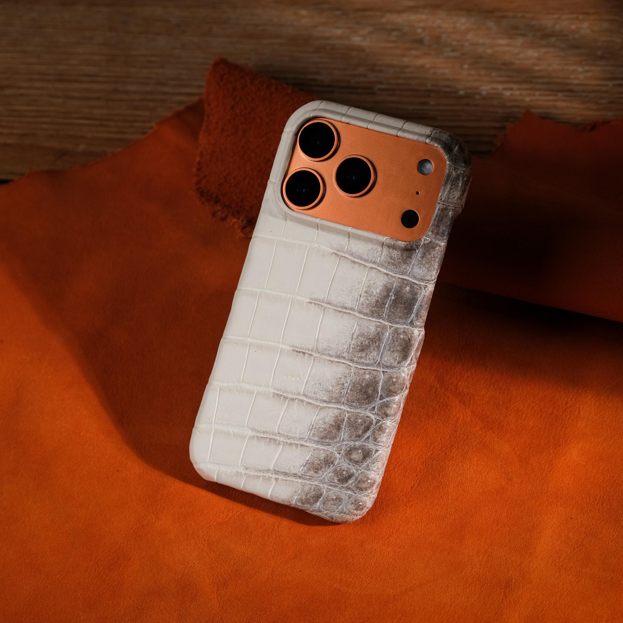 Ốp lưng iPhone được chế tác thủ công từ da cá sấu bạch tạng Himalaya – dòng da quý hiếm bậc nhất thế giới với hiệu ứng chuyển màu trắng kem sang xám nhạt tự nhiên, gợi liên tưởng đến dãy núi tuyết Himalaya huyền thoại. Mỗi ô vảy bụng cá sấu được sắp xếp đối xứng, rõ nét, mang vẻ đẹp độc bản không chiếc nào giống chiếc nào. Nghệ nhân KOI Leather gia công hoàn toàn bằng tay, ôm khít thân máy, mở chính xác cụm camera và các cổng kết nối. Lớp da mềm mại, chống trầy tốt, đồng thời tôn lên phong cách sang trọng, khác biệt cho người sở hữu. Sản phẩm phù hợp làm quà tặng cao cấp hoặc phụ kiện cá nhân đẳng cấp.