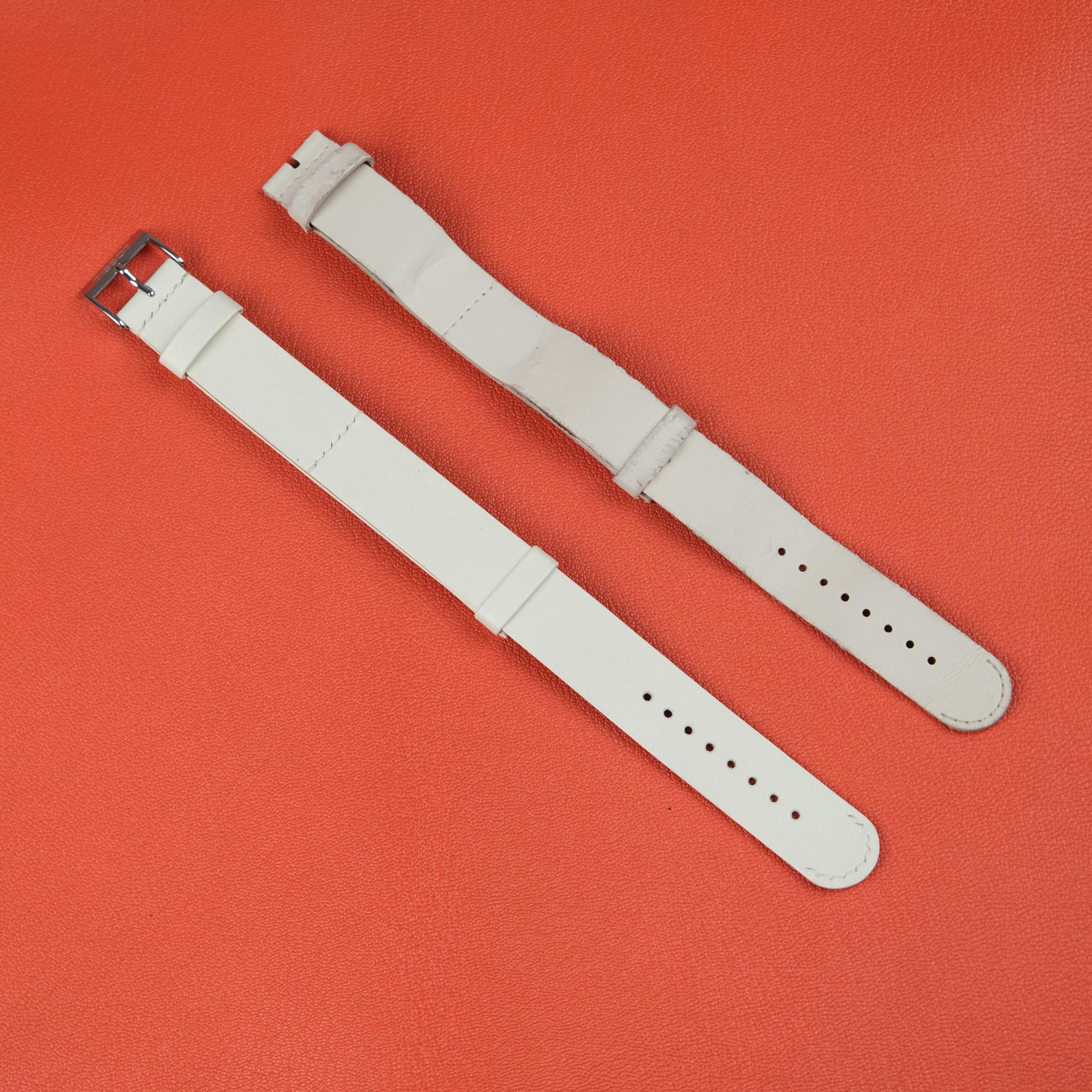 Dây da đồng hồ handmade được chế tác từ da bò vân Swift cao cấp màu trắng ngà – loại da nổi tiếng với bề mặt trơn mịn, mềm dẻo và độ bóng nhẹ tự nhiên. Sản phẩm được nghệ nhân KOI Leather cắt may hoàn toàn bằng tay, đường chỉ khâu đều tay và chắc chắn, mang đến vẻ thanh lịch tối giản khi kết hợp cùng mặt đồng hồ. Khóa cài bằng thép không gỉ sáng bóng, tương thích tốt với các dòng đồng hồ Tissot và nhiều thương hiệu có kích thước lug tương đương. Dây có lỗ cài đa vị trí, phù hợp nhiều cỡ cổ tay. Màu trắng ngà dễ phối đồ, thích hợp cho cả nam và nữ trong phong cách thanh lịch, hiện đại.