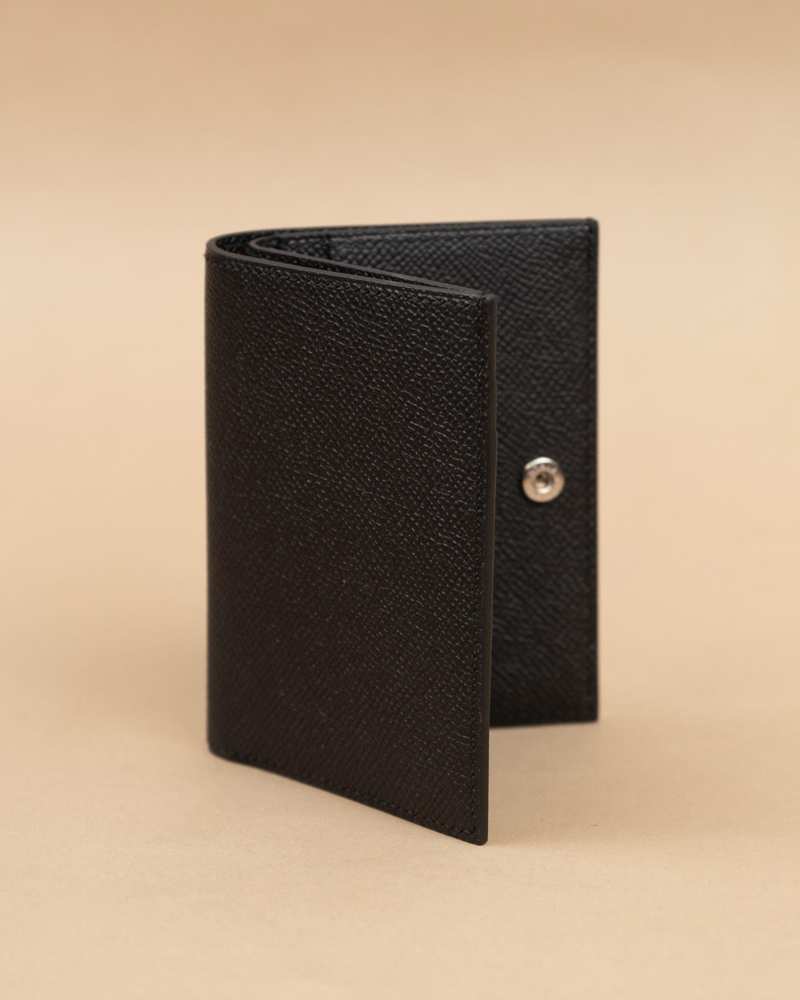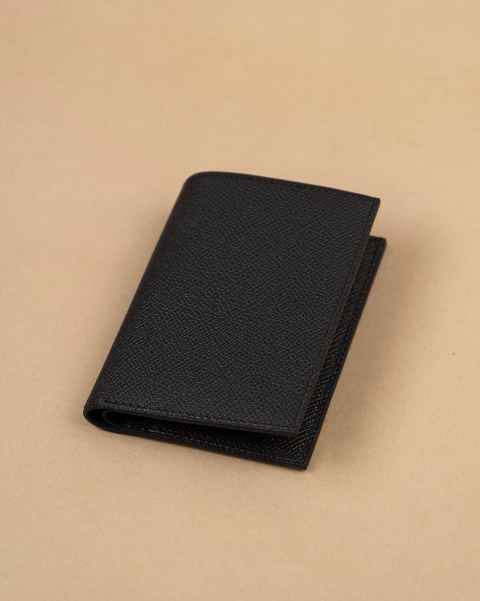 Ví gập nam da bò vân Epsom màu đen (Noir) — sản phẩm thủ công cao cấp đến từ xưởng KOI Leather. Da bò nhập khẩu được thuộc và ép vân Epsom đặc trưng với hạt nổi vuông đều, mang lại bề mặt cứng cáp, chống trầy xước và không thấm nước tuyệt vời.