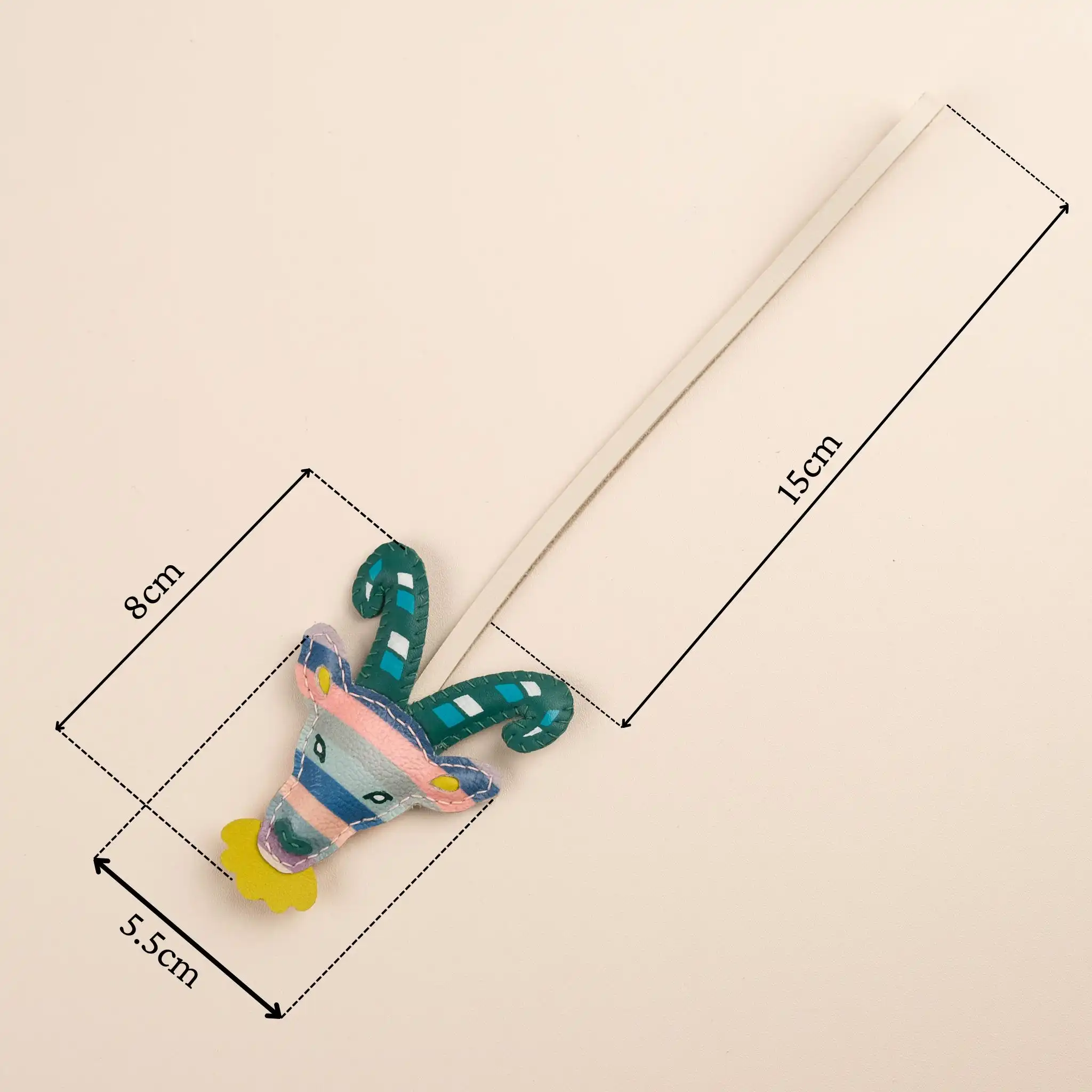 Charm sử dụng phối màu xanh – hồng – vàng nhạt tạo cảm giác trẻ trung, vui mắt nhưng không quá gắt. Màu sắc được chọn để tạo điểm nhấn rõ khi treo trên túi, balo hoặc móc khóa. - Dây treo da đi kèm: