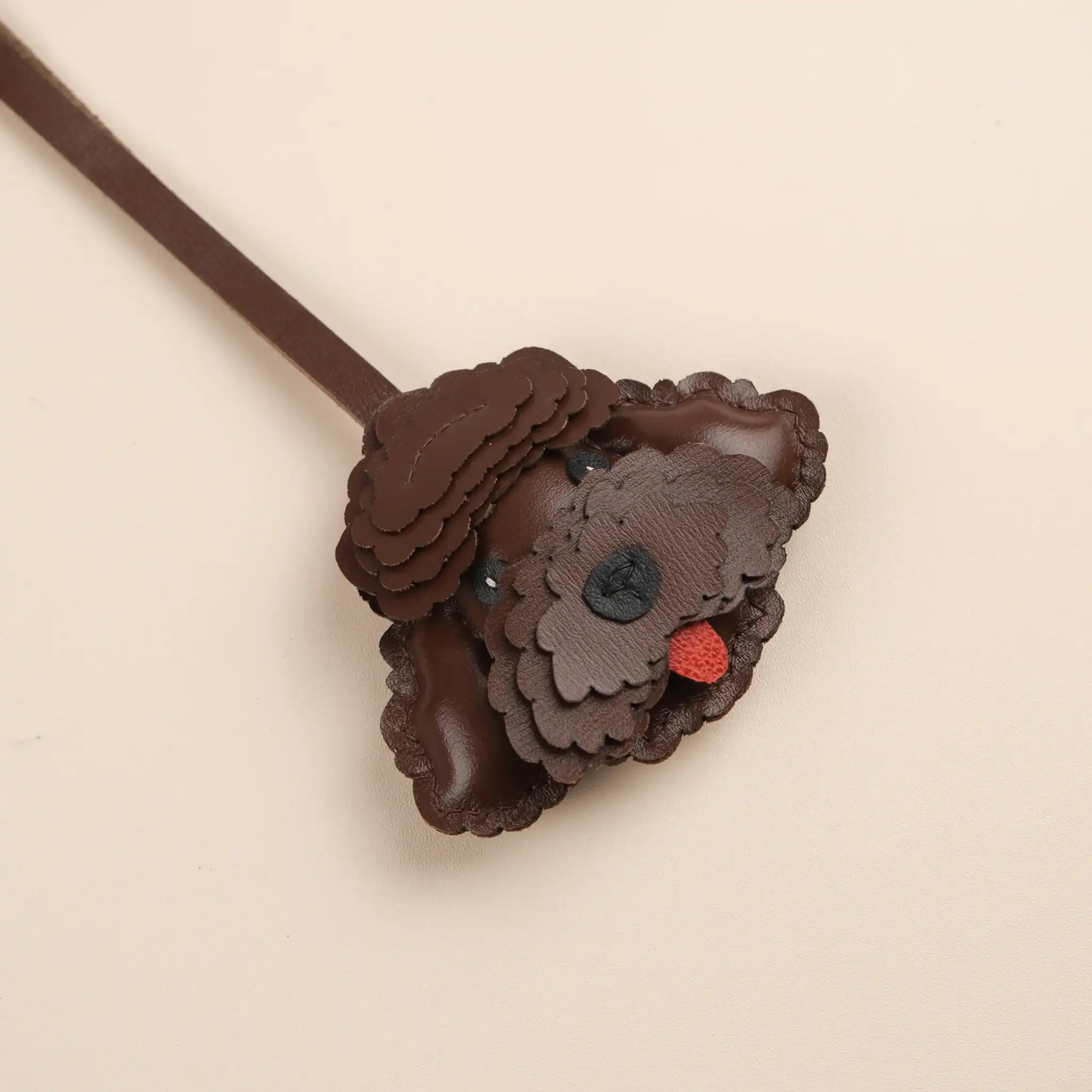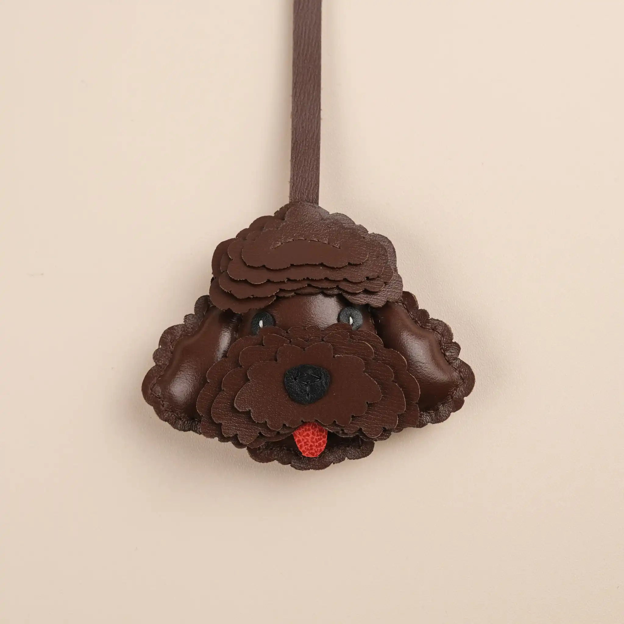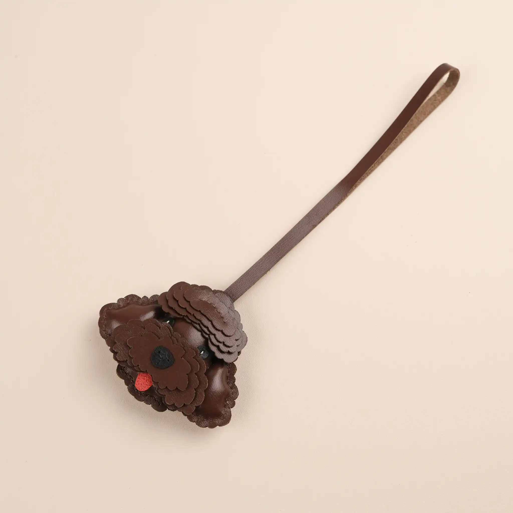 Charm được tạo hình chú cún poodle với đặc trưng bộ lông xoăn, thể hiện bằng cách ghép nhiều lớp da cắt thủ công. Các lớp da chồng lên nhau tạo chiều sâu, giúp hình dáng cún trông sinh động và có “thần thái” hơn khi nhìn trực diện. - Chất liệu da bò thật 100%: