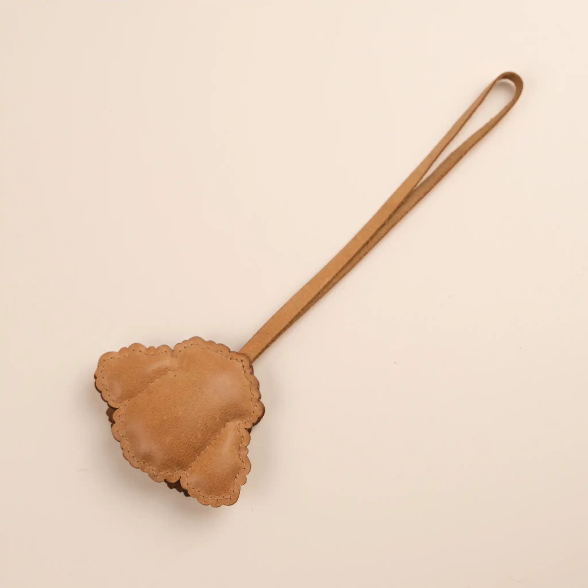 Charm có dây treo da mềm, dễ buộc vào quai túi, balo, tote hoặc móc khóa. Thiết kế đơn giản, tiện lợi khi sử dụng hằng ngày.