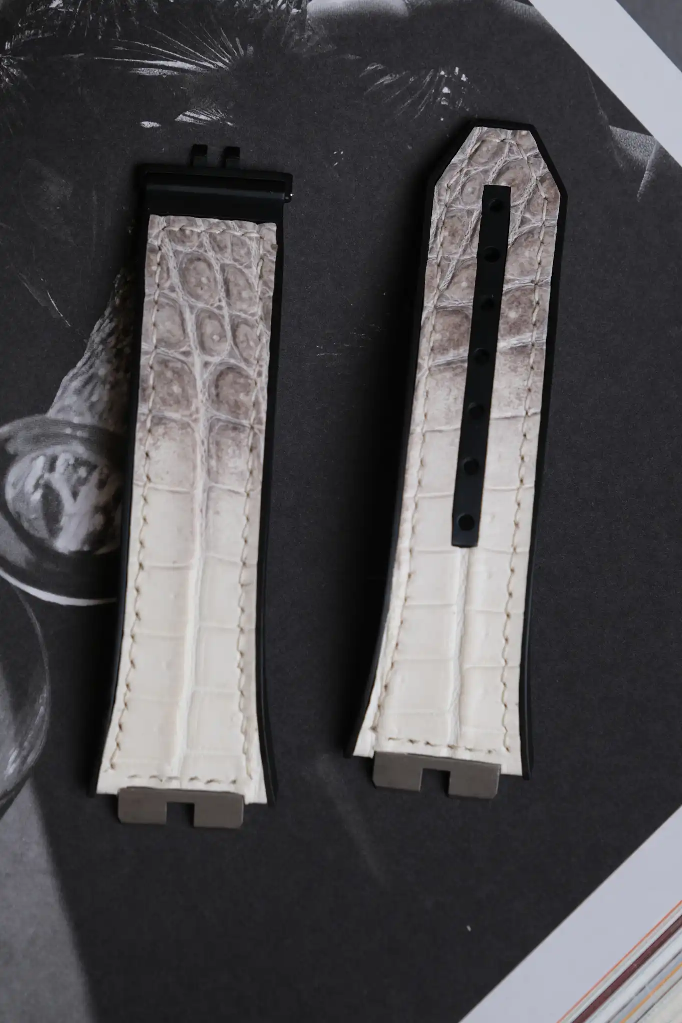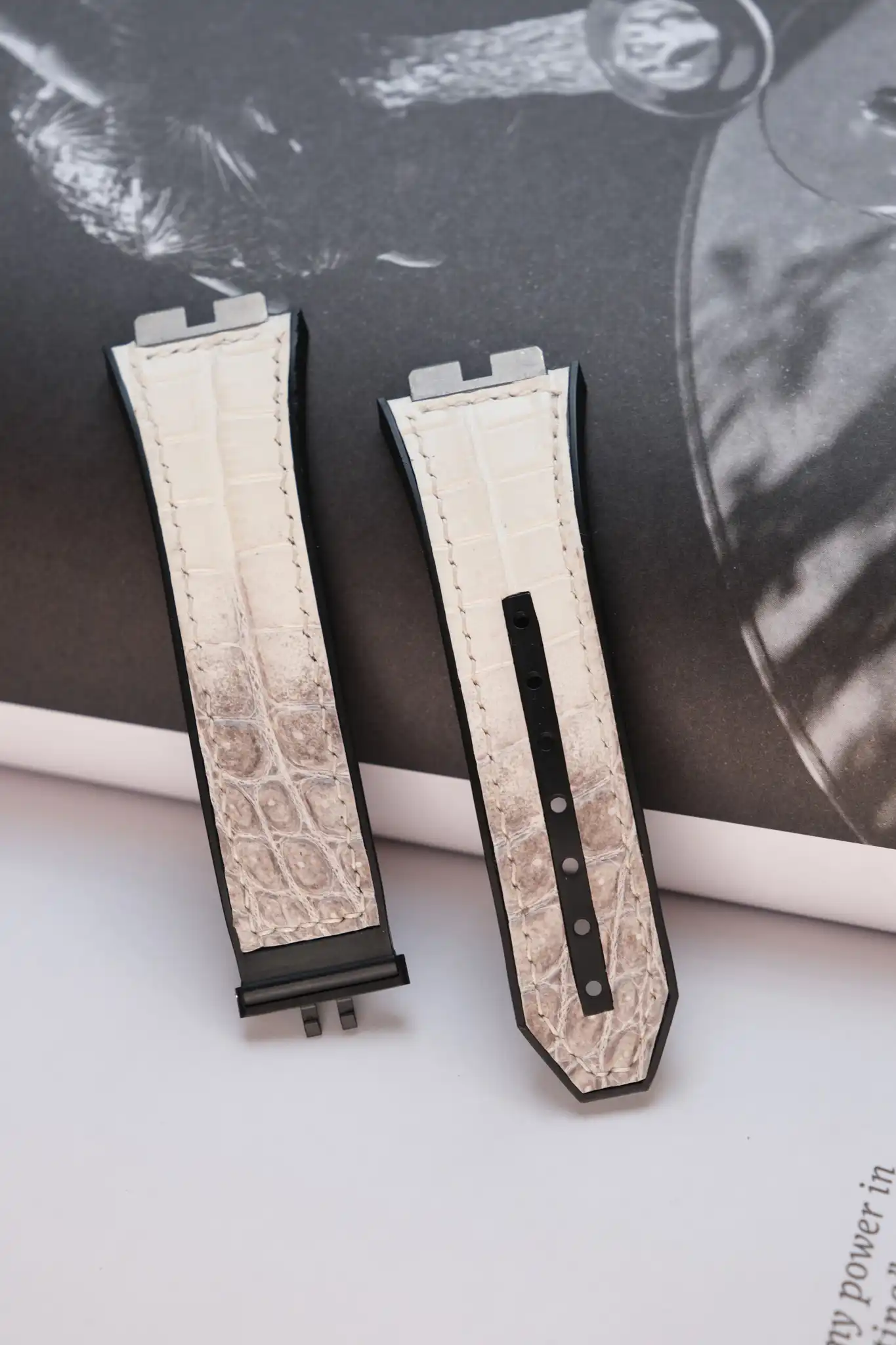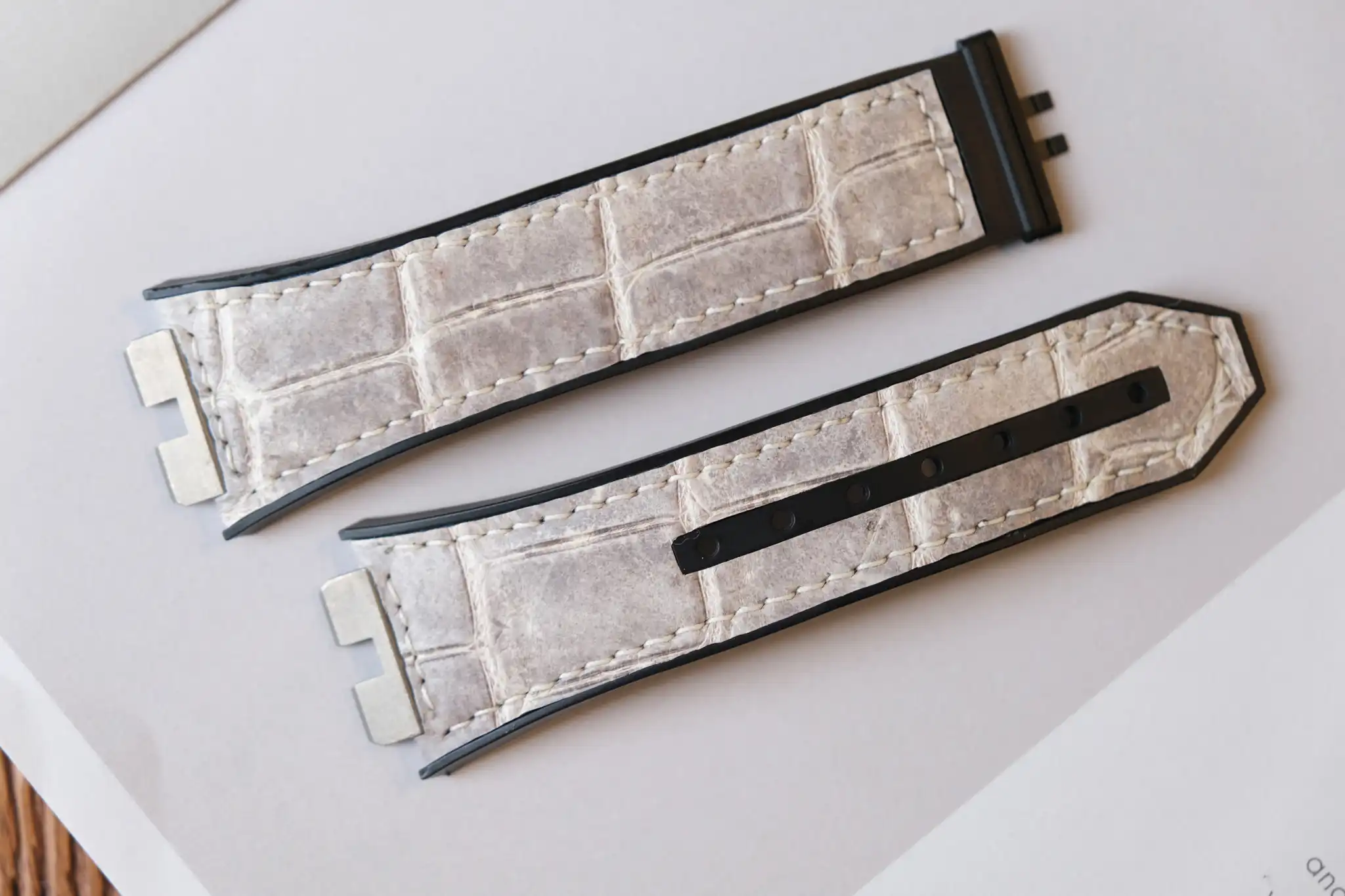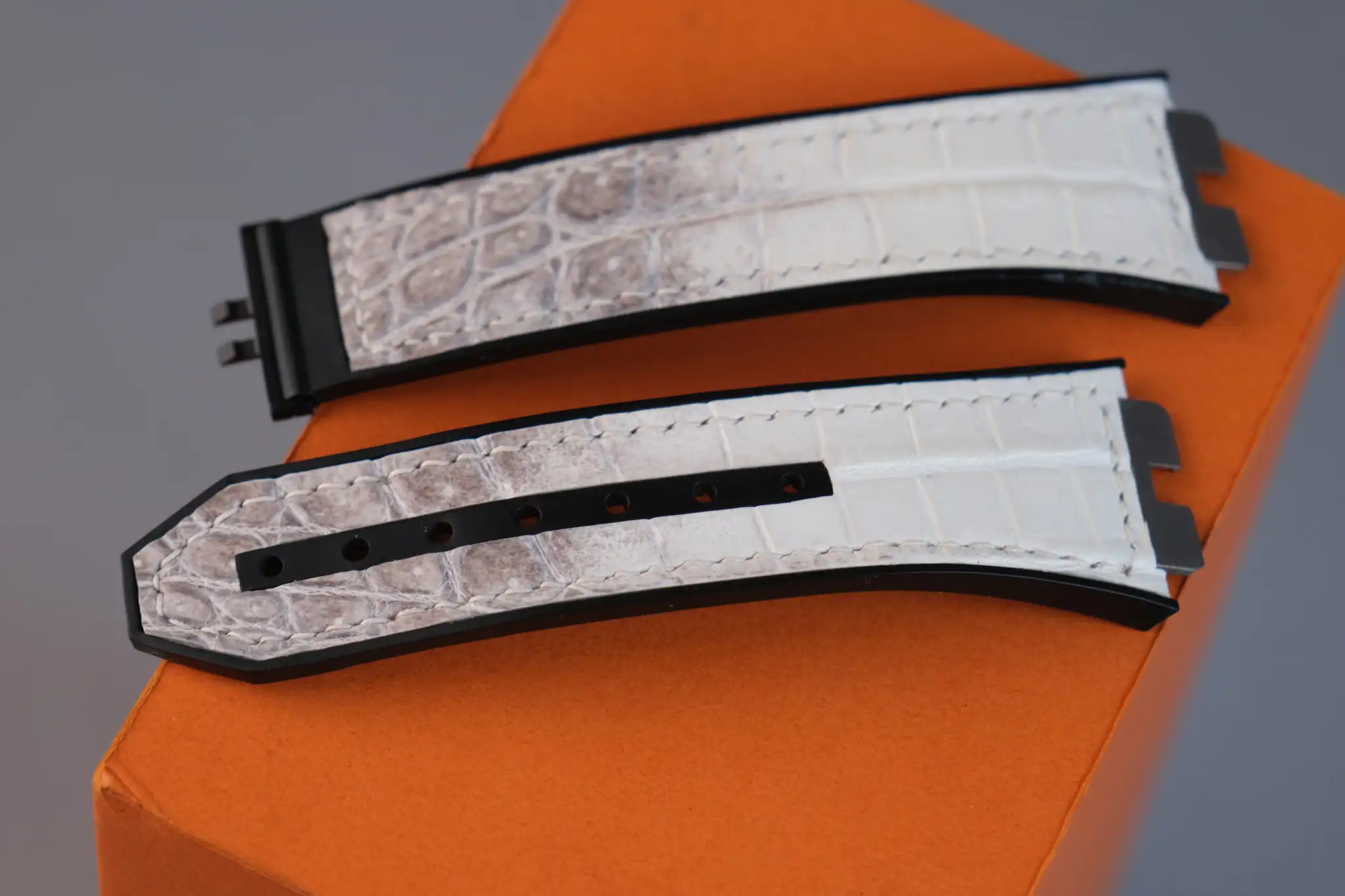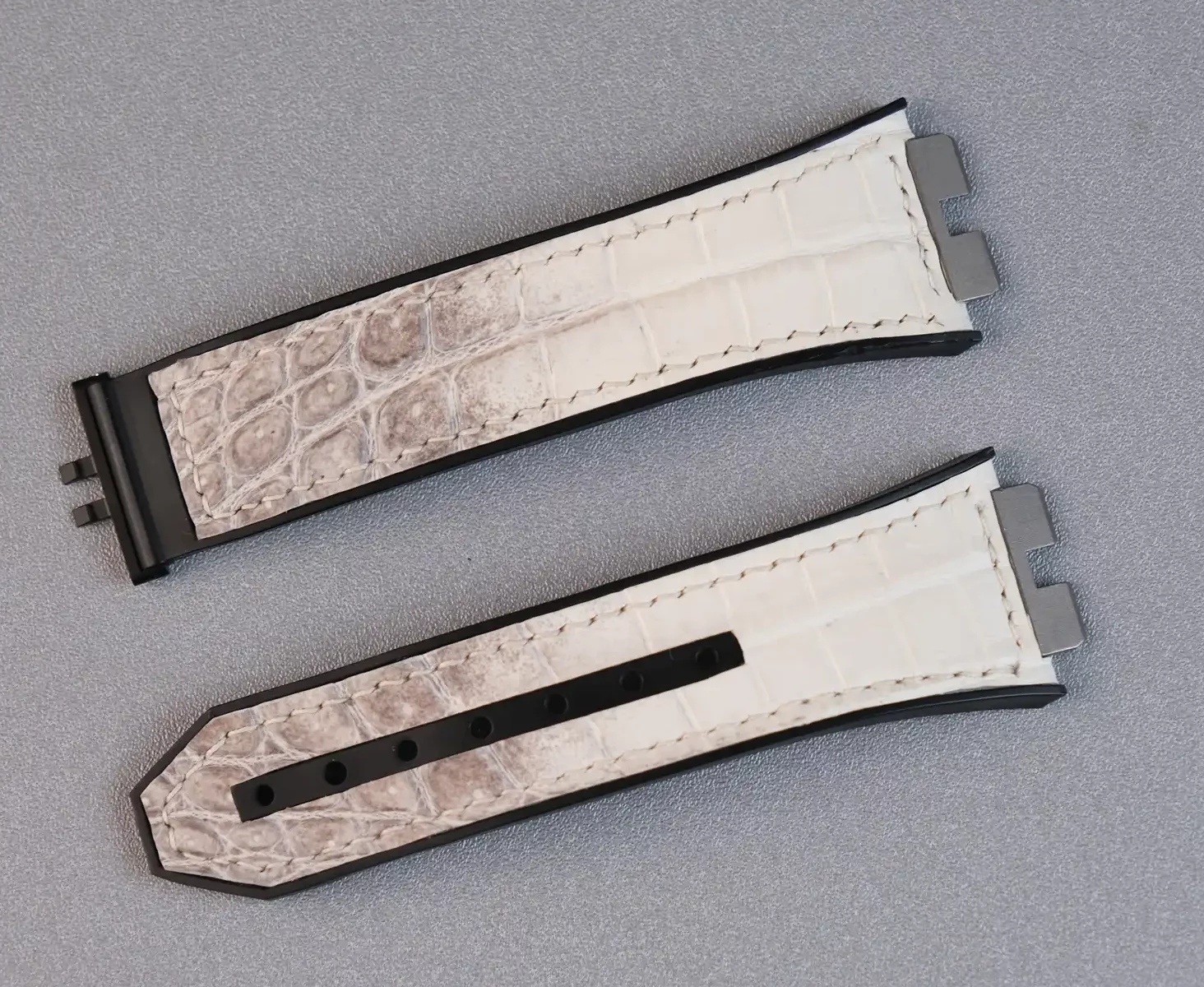 Hublot Straps – Da Alligator – White Ivory là lựa chọn hoàn hảo dành cho những ai muốn nâng tầm chiếc đồng hồ Hublot bằng một phụ kiện mang giá trị thủ công và thẩm mỹ cao cấp. Được chế tác từ da cá sấu thật, dây sở hữu sắc White Ivory (trắng ngà) tinh tế, pha ánh xám tự nhiên, tạo cảm giác sang trọng, sạch sẽ và khác biệt ngay từ cái nhìn đầu tiên.