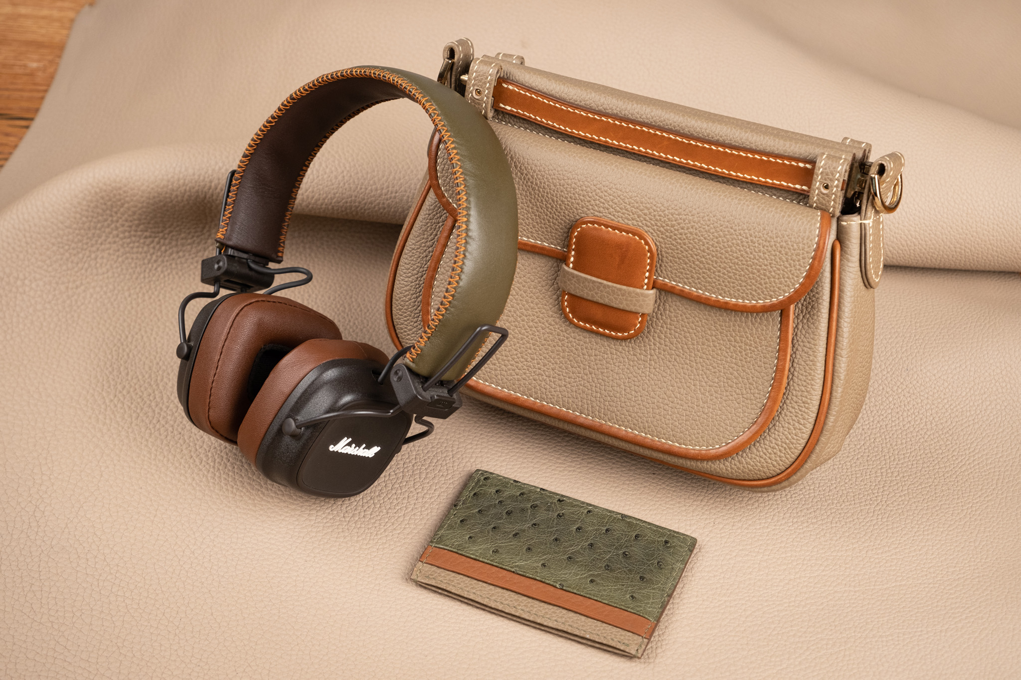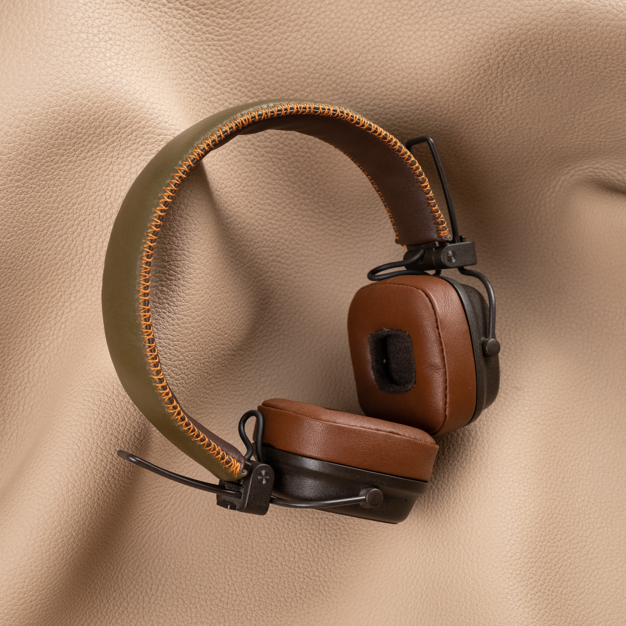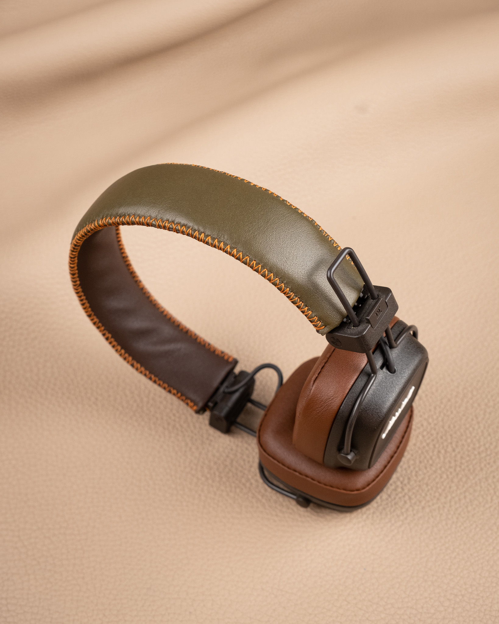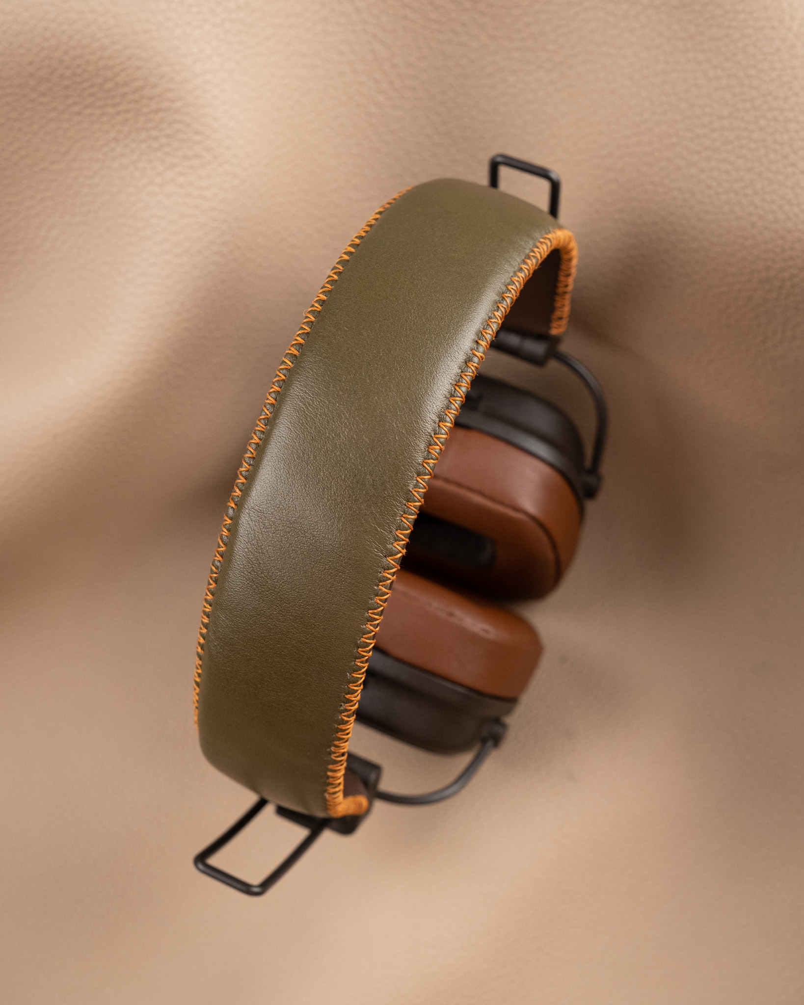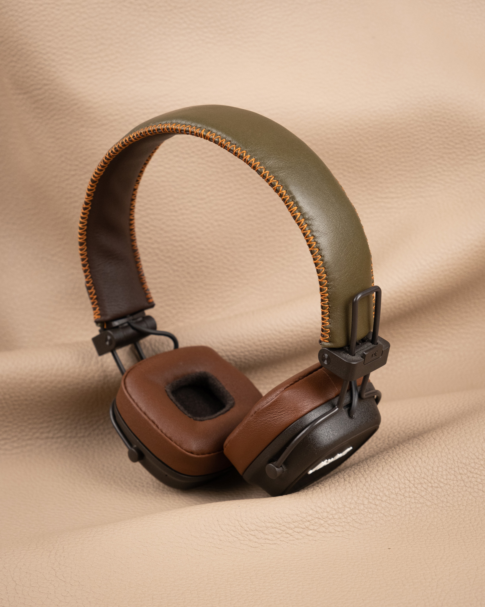 Nâng tầm trải nghiệm âm nhạc với tai nghe Marshall được bọc da Nappa cao cấp. Chất liệu mềm mại, bền bỉ cùng màu Brown x Olive sang trọng mang đến vẻ ngoài thời thượng, bảo vệ tai nghe khỏi trầy xước và hao mòn. Dịch vụ bọc thủ công tại Koi Leather tỉ mỉ đảm bảo vừa vặn và tinh tế, biến chiếc tai nghe của bạn thành phụ kiện cá nhân độc đáo.